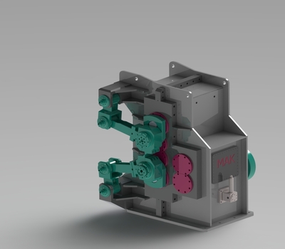 B- Crank shear Start-stop, crank type with one blade on each blade holder. Bladeholder shafts driven by gears powered by start-stop motor. Input shaft dimensioned to ensure the required inertia for cutting (i.e. a flywheel is installed if required). Fabricated steel housing, sealed for oil tightness. Transmission gears in alloy steel, carburized, hardened and ground, mounted on roller bearings. Fabricated steel blade holders and articulated arms. Blades are fastened by screws; blade overlap is adjusted by shims while clearance is adjusted by eccentric pins